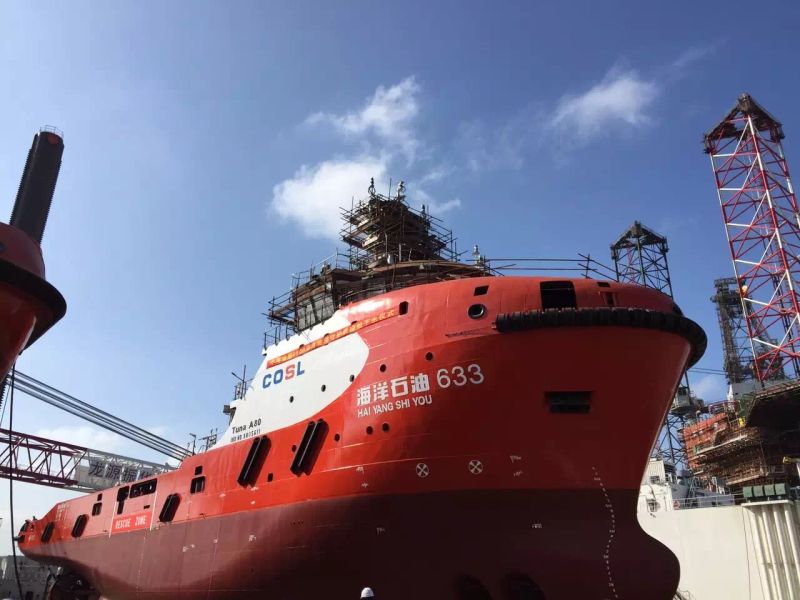 由南通豪通船務(wù)(上海事業(yè)部)在上海振華重工承接的中海油服三艘6500HP油田守護船,其中第二艘船“海洋石油633”于11月16日10:18分,順利下水。