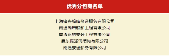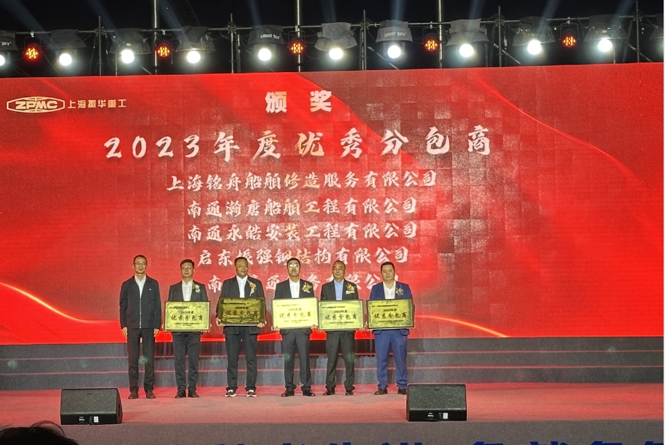 5月8日晚,振華啟東海工成立10周年職工歌詠比賽暨2024年“六比六創(chuàng)·三型一流杯”奪標(biāo)勞動(dòng)競賽啟動(dòng)儀式在公司行政樓廣場隆重舉行。活動(dòng)中,公司對2023年度“優(yōu)秀分包商”“優(yōu)秀項(xiàng)目部”“優(yōu)秀團(tuán)隊(duì)”“優(yōu)秀干部”“優(yōu)秀員工”進(jìn)行表彰。 南通豪通船務(wù)有限公司榮獲2023年度“優(yōu)秀分包商”稱號。